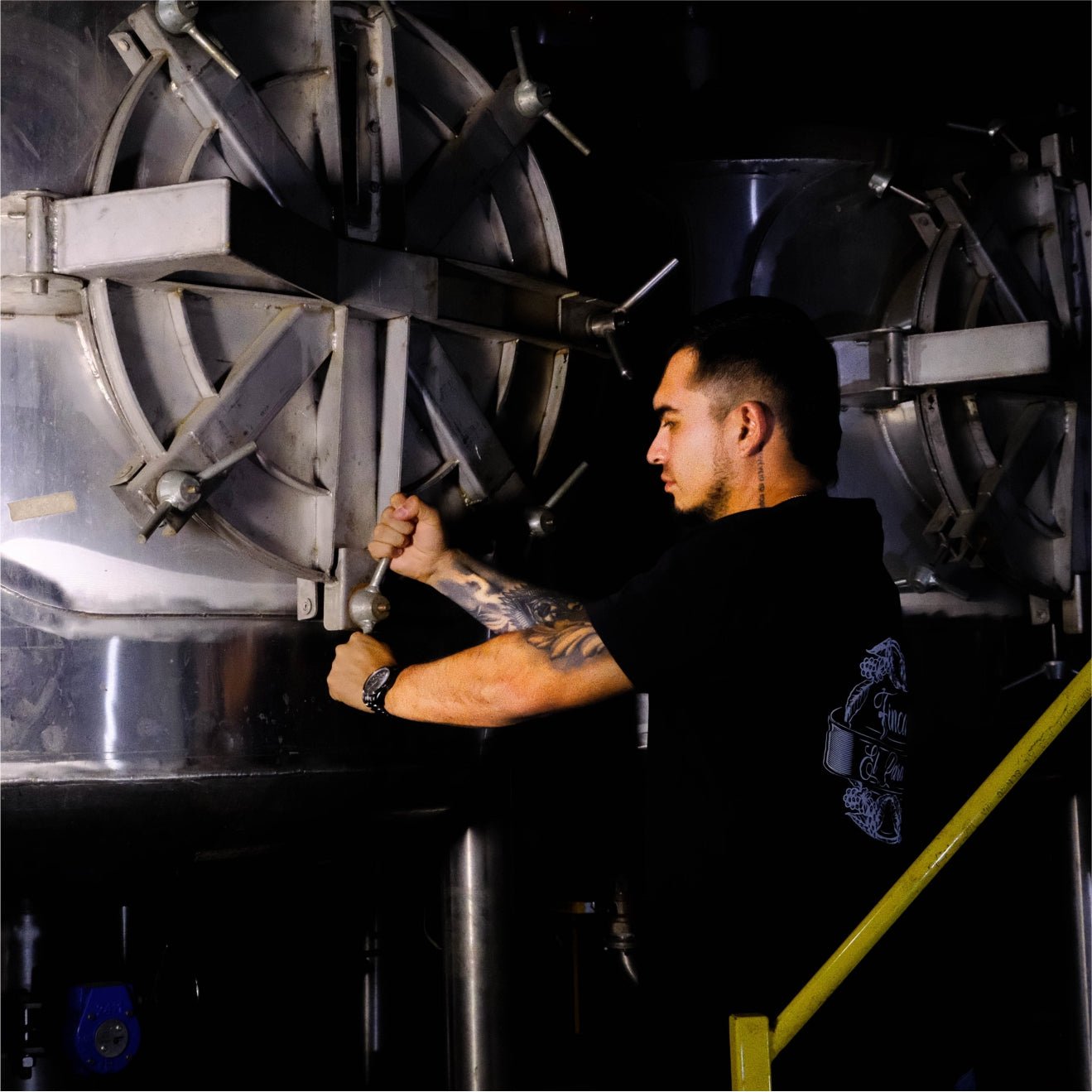 The coffee you’ll be experiencing today is a semi-washed coffee with a special fermentation process developed by Diego Bermúdez. It begins with ozone treatment to disinfect the cherries, followed by a 36-hour anaerobic fermentation. After that, the coffee is pulped and demucilaginated, then specific microorganisms are added for a second fermentation under pressure for another 20 hours. The process ends with a thermal shock to preserve the floral aromatics—reminding me of rose tea—and finishes with immediate drying on raised beds.
